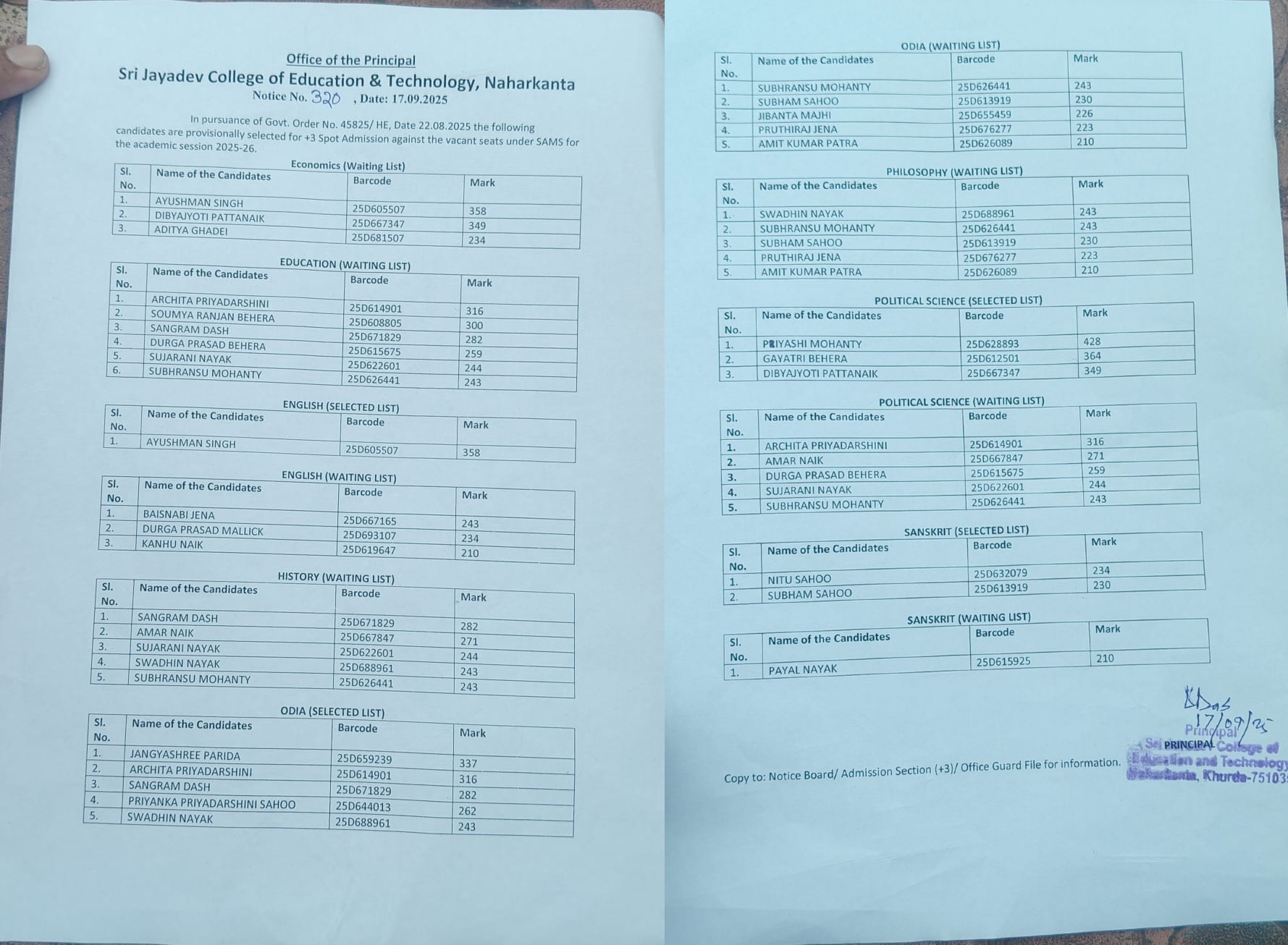 ADMISSION WAITING LIST 01.11.2025 379 Download/View